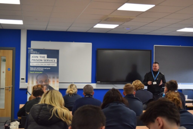 Our Public Services students participated in a careers talk with Steven Bird, a PCO (Prison Custody Officer) at Wandsworth Prison and Probation Service, who described the day-to-day running of the facility and the various careers that exist across the business. He highlighted several career opportunities within the prison that students may not typically consider, such as dog handling, finance, IT and HR roles.